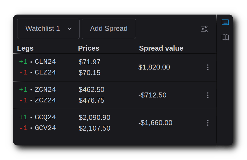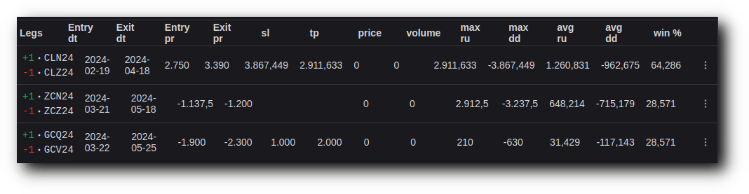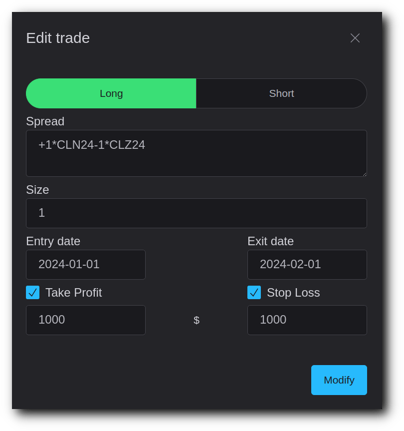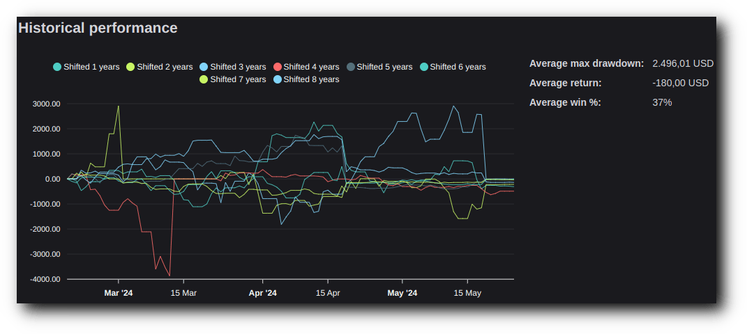 Once you have found a spread you like, create a trade and see how it would have performed in the past based on your take profit and stop loss levels