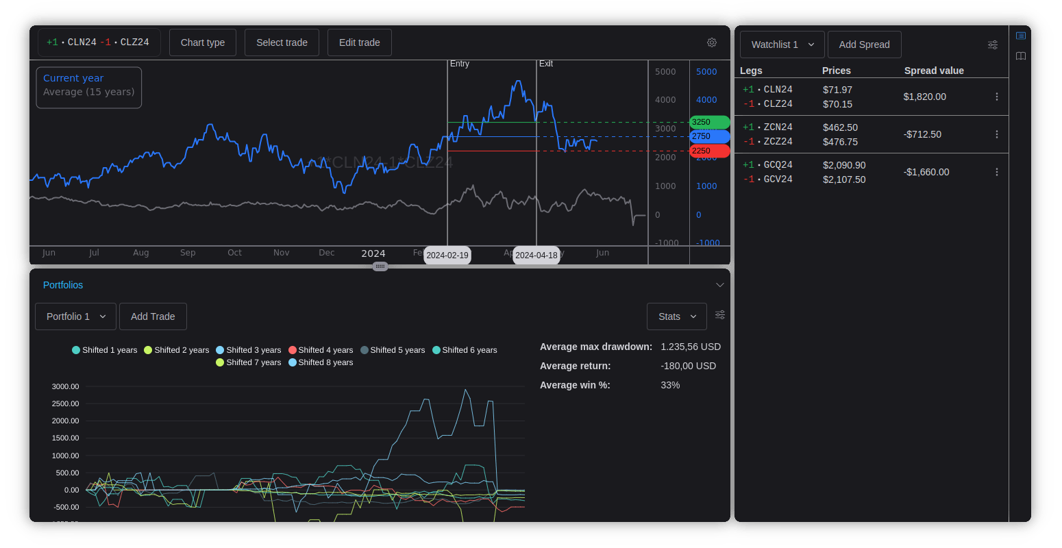 Tracking the performance of singular trades is not enough. With SpreadTradingHub you can see how your entire portfolio has performed in past years, and everything is updated automatically when you modify trades.
